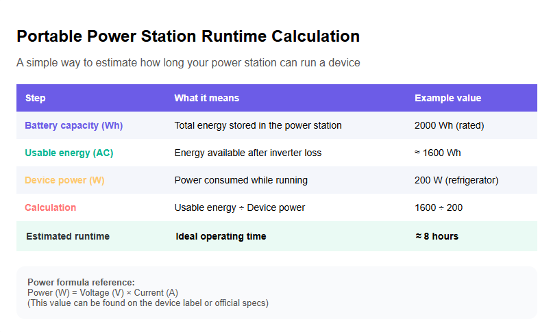 Runtime depends on battery capacity, how you use the power, and real-world conditions, not just the specs listed on a product page. In this article, we’ll start with the most basic calculations, then walk through real usage scenarios to explain what truly determines how long a portable power station can run—and whether it fits your needs.