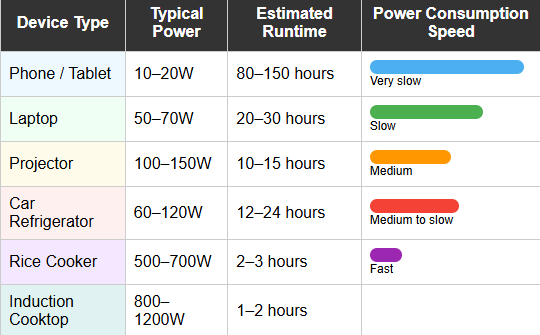 When powering high-wattage appliances for extended periods, energy drains much faster, significantly shortening runtime.