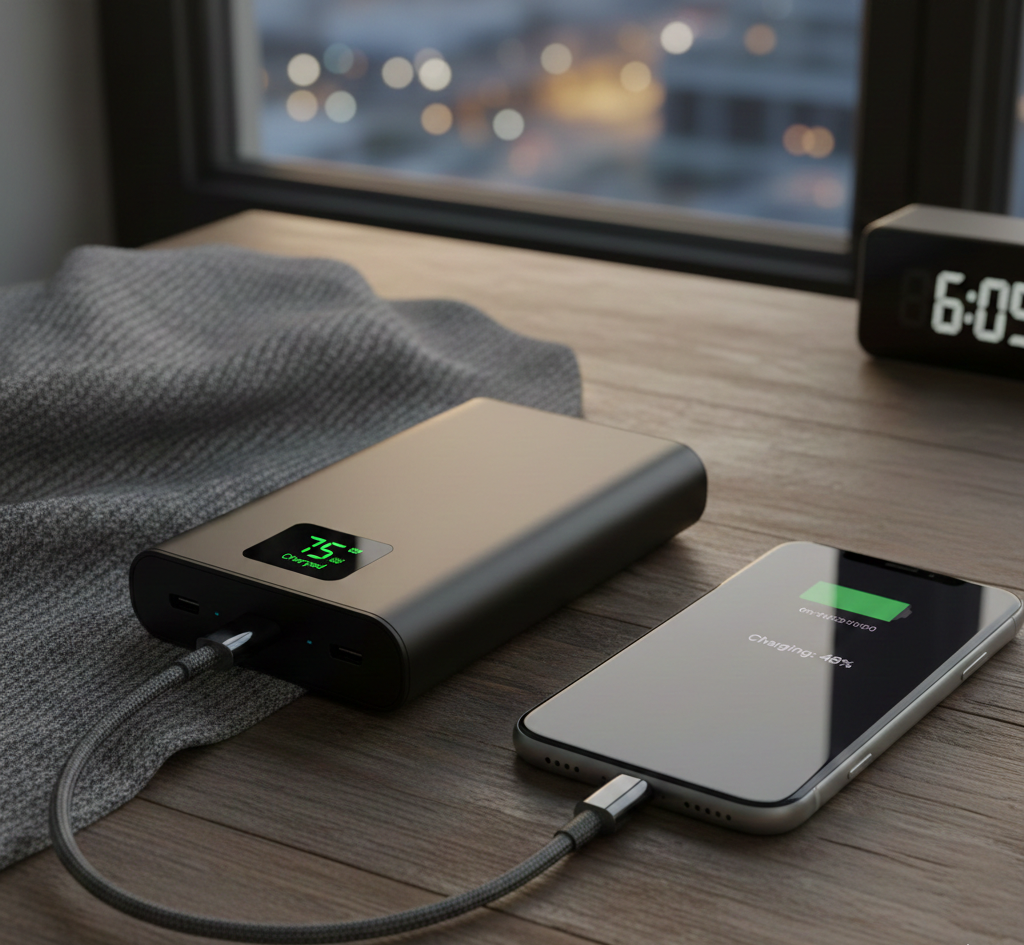If you only need to charge a phone, earbuds, or other small electronics during daily commutes, a power bank is the better choice. It’s compact, lightweight, and more than enough for this purpose. Even the smallest portable power station is still bulkier than a power bank.