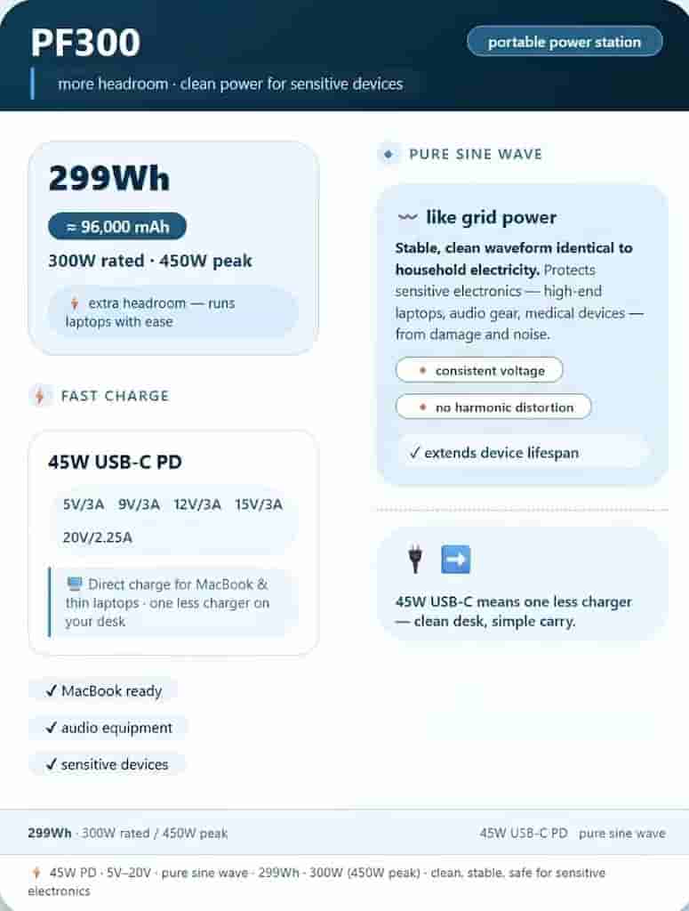 1. Enough Capacity:For a home office, aim for 200Wh to 500Wh. That’ll keep your essential stuff running for hours.