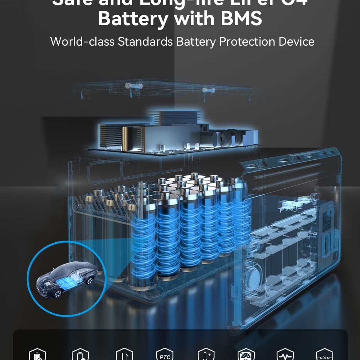 Safe and Durable: We use automotive-grade lithium iron phosphate batteries, coupled with a cycle life of 3,500 cycles, ensuring reliable performance even in extreme environments. This guarantees safer and more worry-free use.