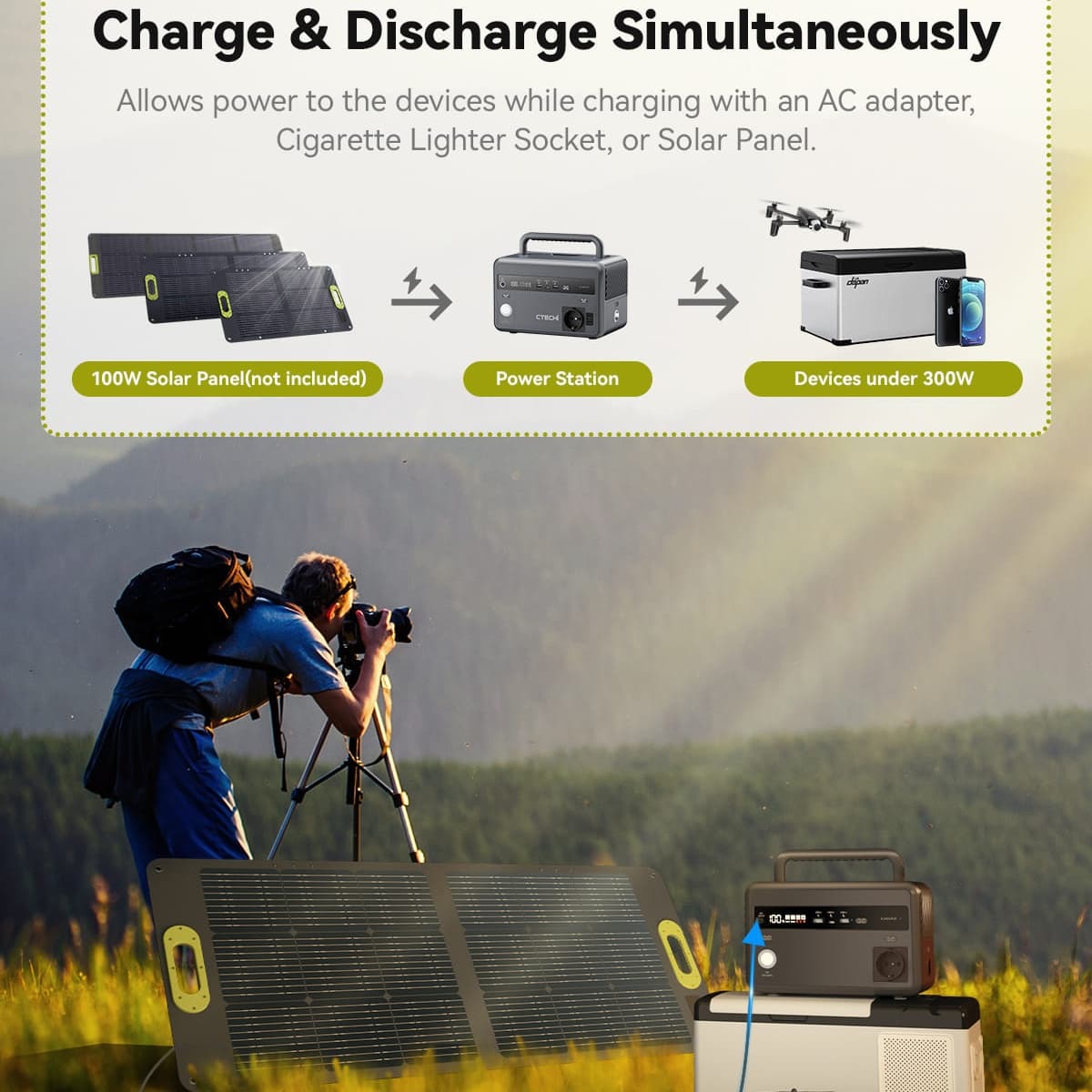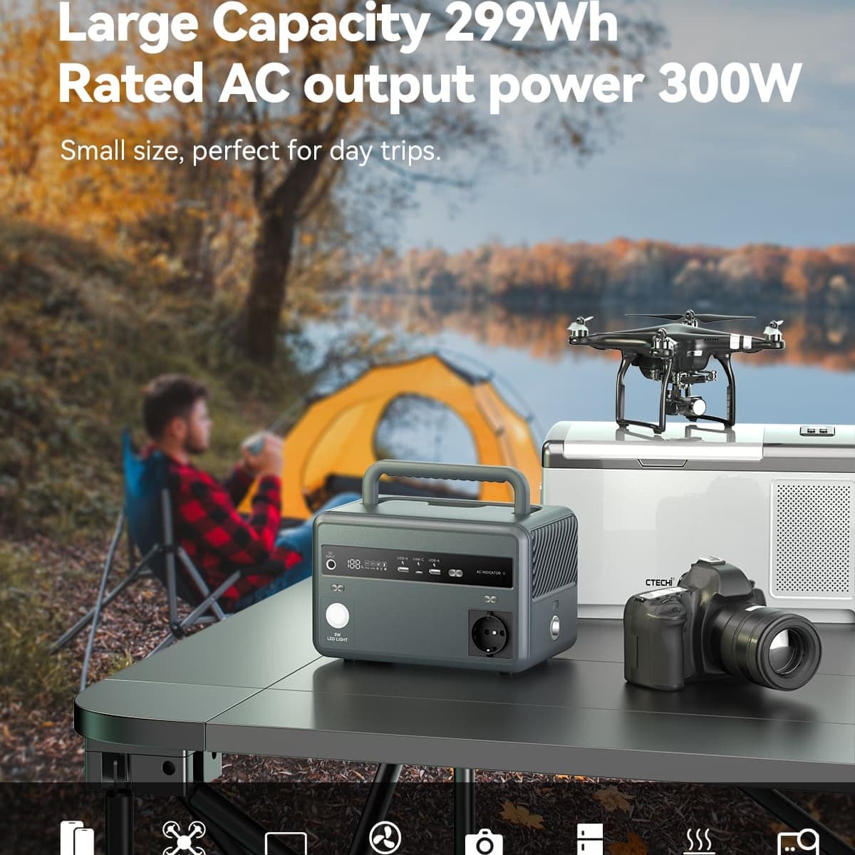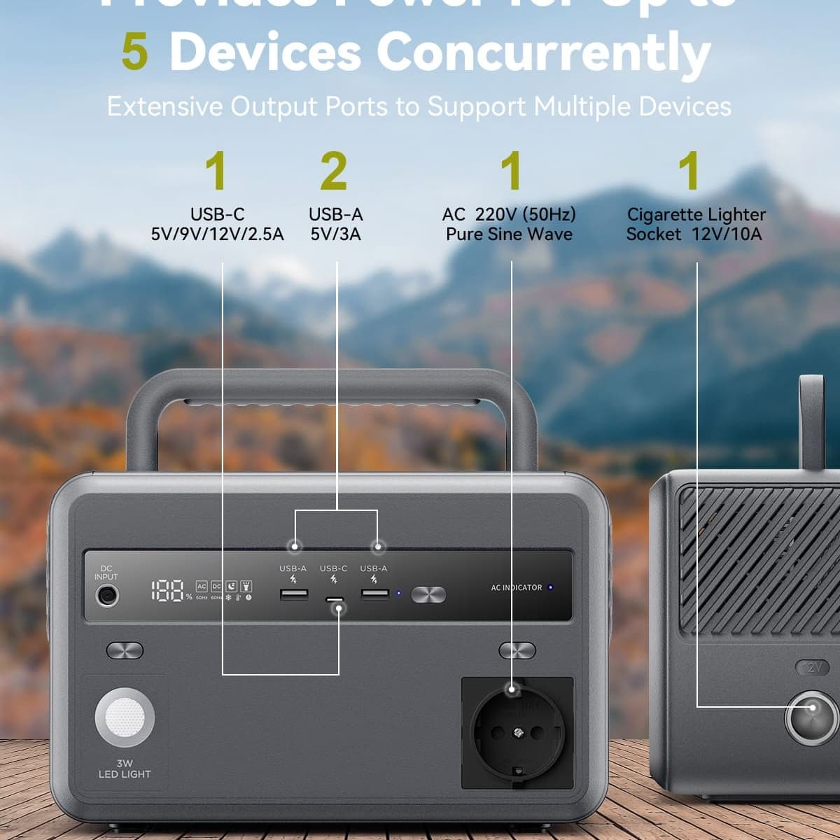 Our product is suitable for various scenarios, including outdoor activities, home emergencies, mobile work, and more. This power station is an ideal choice for medium-to-low power, multi-device, and high-frequency use. The safety and long lifespan of its lithium iron phosphate battery provide peace of mind across all scenarios.